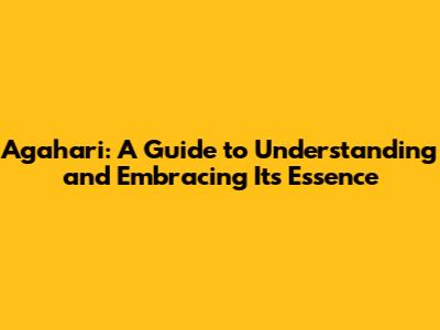 Hey guys! Today, we're diving deep into something really special: Agahari. Now, you might be scratching your head, wondering, "What in the world is Agahari?" Well, stick around because by the end of this article, you'll have a much clearer picture and maybe even feel inspired to embrace its unique spirit. We're going to unpack the meaning, explore its origins, and see how it can actually be relevant in our busy, modern lives.