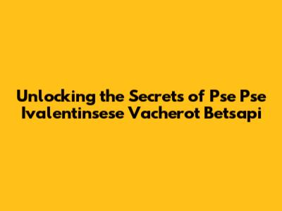 Hey guys! Ever stumbled upon a term that sounds like it's straight out of a sci-fi novel or a complex coding language? Well, "Pse Pse Ivalentinsese Vacherot Betsapi" might just be one of those head-scratchers. But don't worry, we're going to break it down in a way that's super easy to understand. Think of this as your friendly guide to demystifying the seemingly complex. We'll explore what each part of this term could potentially refer to, and why it might be important. So, buckle up, and let's dive into the fascinating world of "Pse Pse Ivalentinsese Vacherot Betsapi"!